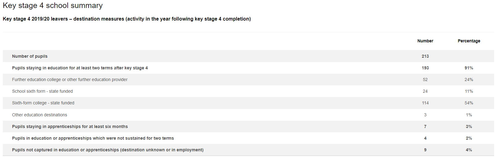 School Performance Tables published by the Secretary of State can be accessed here https://www.compare-school-performance.service.gov.uk/school/136677/bottisham-village-college/secondary