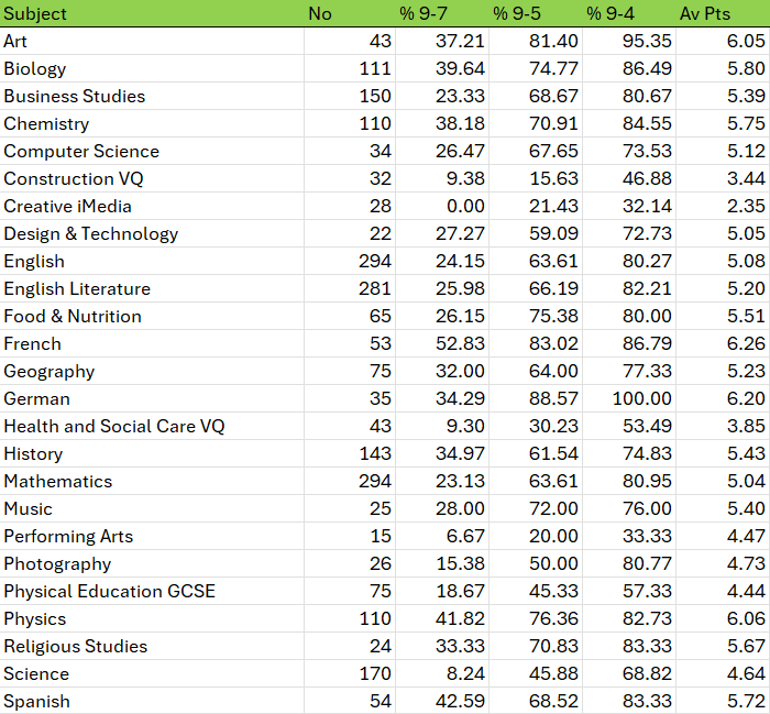 % of students entered who achieved grade 7-9 | 27% |