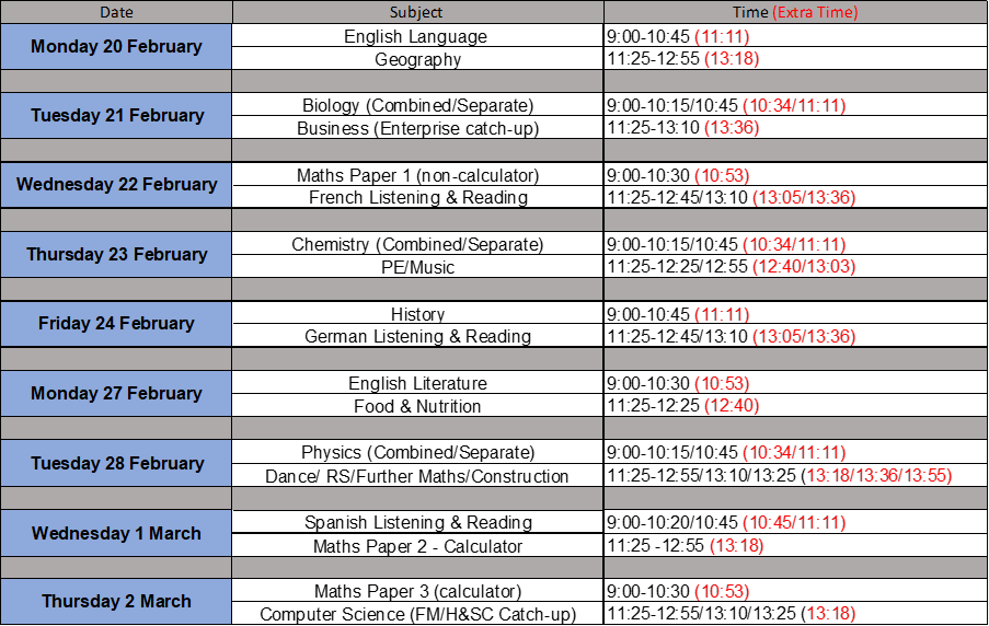 Exam Timetable