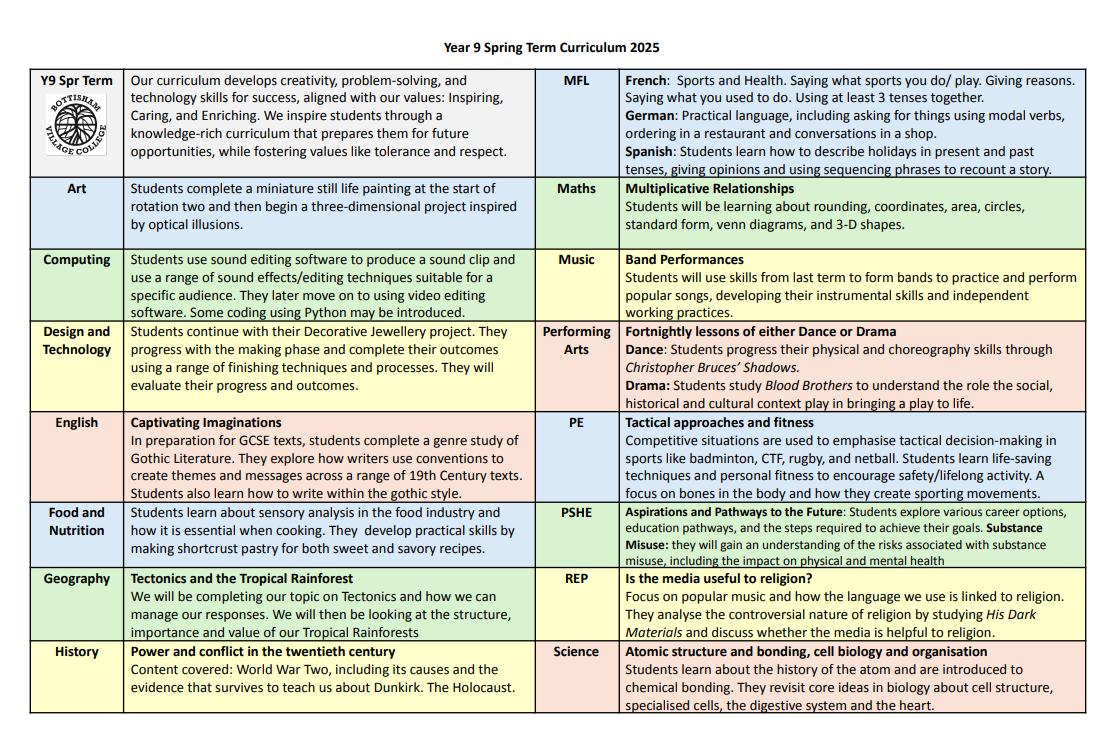 Spring Term Curriculum Plan